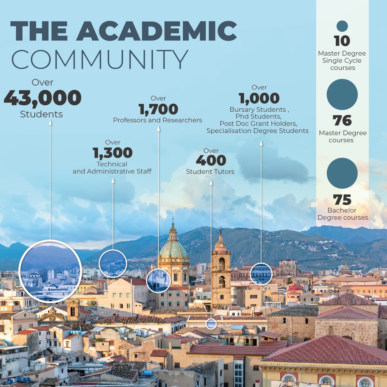 Founded in 1806 by Ferdinand III, of the Bourbon royal family which ruled over the Kingdom of Naples and the Two Sicilies, who made Accademia Panormitana degli Studi a University, now UniPa, ours is a huge campus with a vocation evenly divided up between teaching, research and third mission. The current educational programme consists of 161 courses of study ranging from undergraduate Degrees to Single Cycle Master Degrees and specialisation Degrees, 40 specialisation schools and 33 research doctorates.